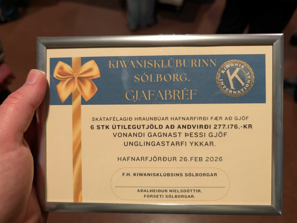 Þann 26. febrúar 2026, færðu Kiwanisklúbburinn Sólborg Hraunbúum sex ný tjöld að gjöf. Tjöldin voru afhent á félagskvöldvöku og kunnum við þeim bestu þakkir fyrir.